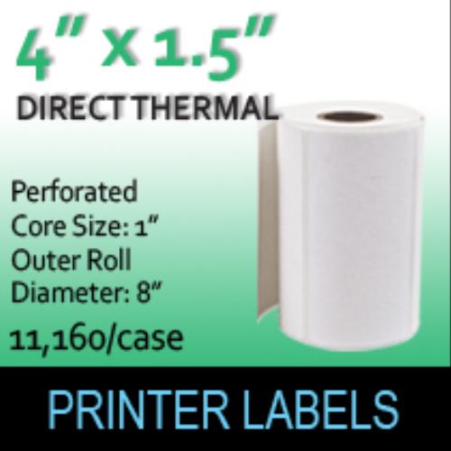 2.25” x 1.25” Direct Thermal Desktop Labels, 1” Core, 4” OD, Outside Wind W/ Perforated Liner ...