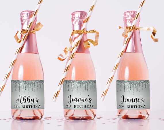 Set of 6 Mini Champagne Bottle Labels, 18th Birthday Gift Girl, 21st ... Set of 6 Mini Champagne Bottle Labels, 18th Birthday Gift Girl, 21st Birthday Decorations, 21st Birthday Gift for Her, BOTTLES NOT INCLUDED: Mini Champagne Bottle Labels - Personalize the design with Corjl and we send the physical labels to you!