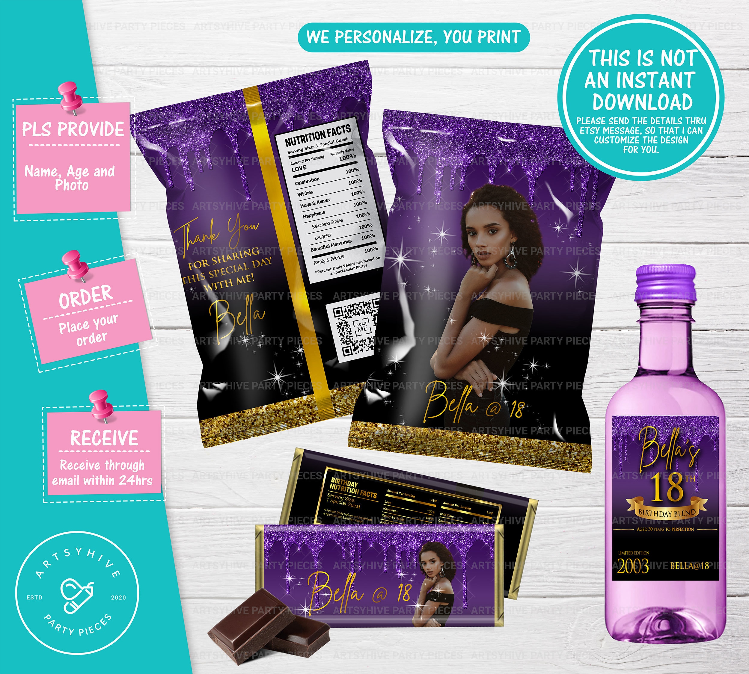 Personalised 18th 21st 30th 40th 50th 60th Happy Birthday Wine ... Personalised 18th 21st 30th 40th 50th 60th Happy Birthday Wine Champagne Bottle Label ~ Any Age Gift Idea for her N71 5.0 out of 5 stars 21 1 offer from £3.00 18th Birthday Chocolate Bars - justcandy.com 18th Birthday. Bulk Candy; Candy Buffets ... Bottle Labels; PARTY SUPPLIES; Banners; Invitations; Stickers; Kiss Stickers; 1.25" Stickers; 2" Stickers; View All; View All; Sort By: Sort. Occasions Adult Birthday (119) Sweet 16 (51) Theme Adult Birthday (89) Photo (30) Patterns (12) Football (4) Glitter (4) Golf Birthday (4 ) Beach (2) Decades ... Pin on Hello 30 - Pinterest Personalized LABELS ONLY to fit standard miniature champagne bottle (20 cl): 5cm tall x 8cm wide on adhesive vinyl label. 2. Waterproof - won't run in the fridge or ice bucket. 3. Can be peeled off and re-positioned. 4. Posted within 1-2 business days (first class post UK). FAQs HOW DO I ORDER? 1. Place your order. 2.